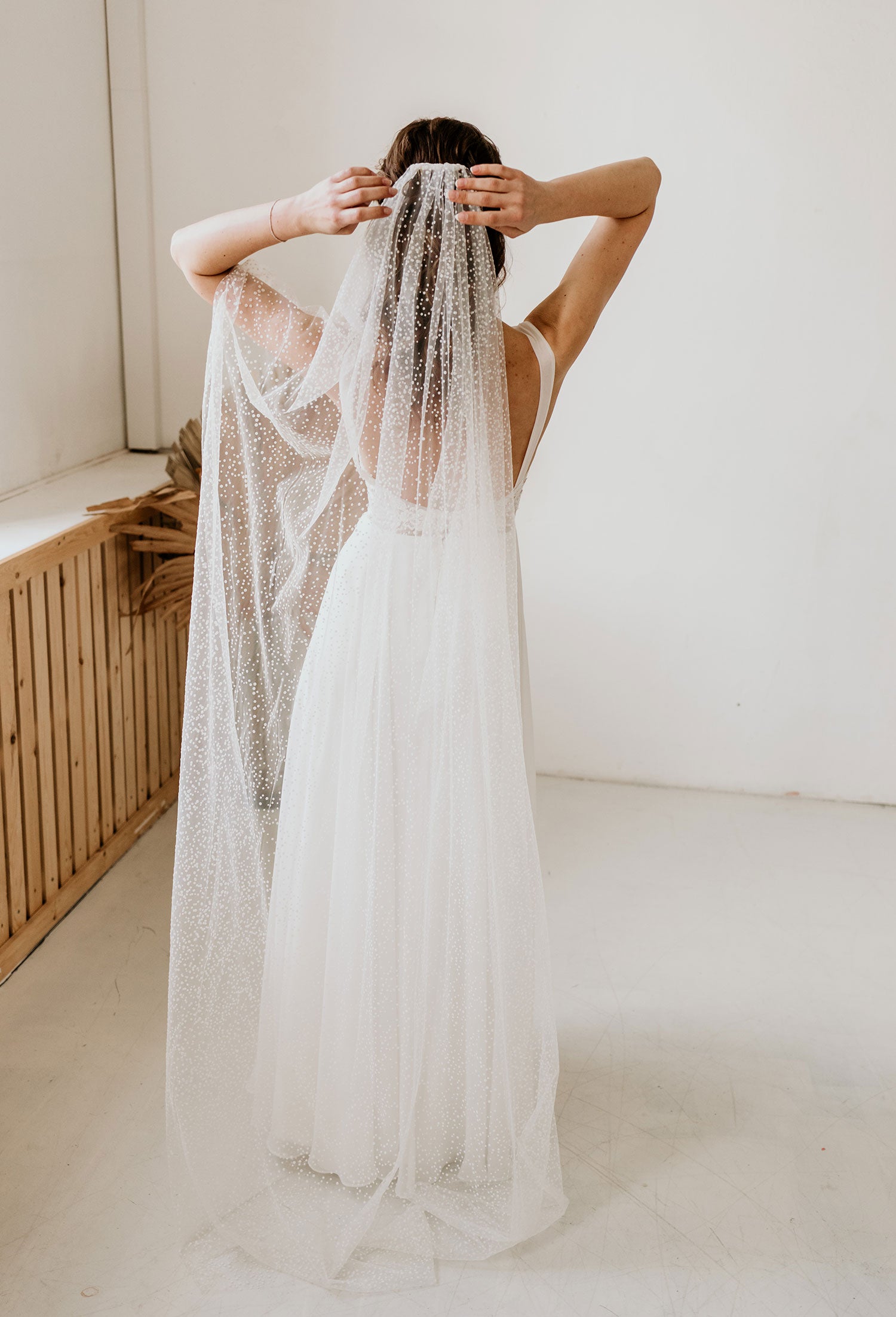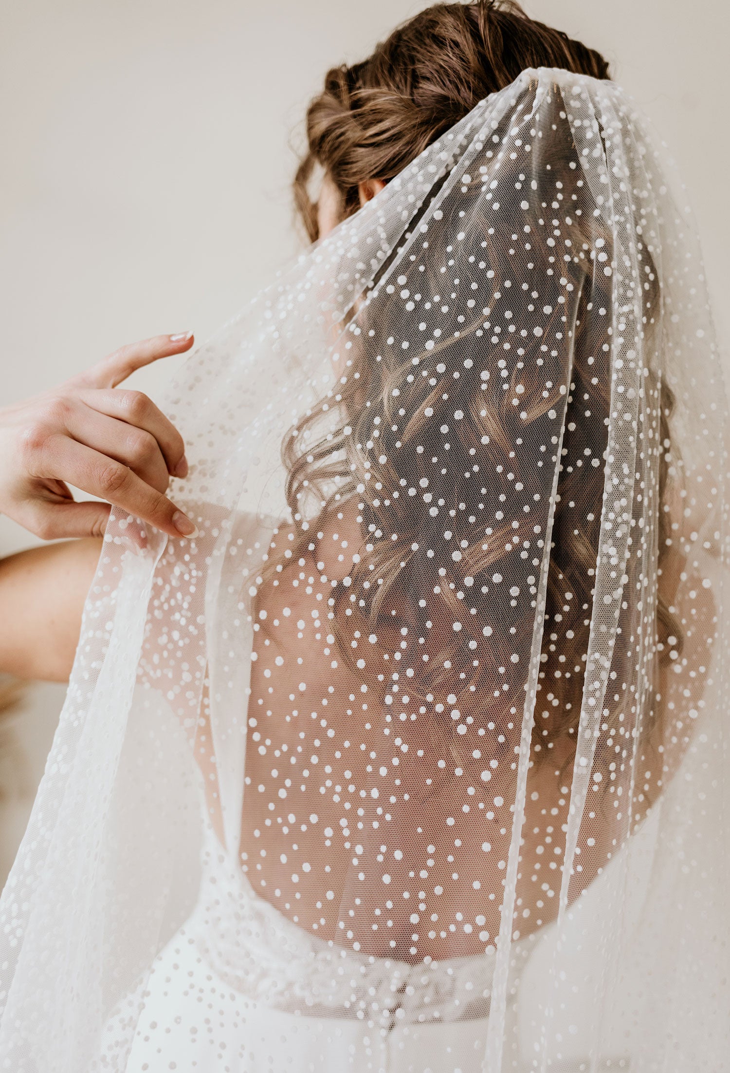 Unser wunderschöner Schleier mit Punkten verleiht deinem Hochzeitsoutfit eine romantische und verspielte Note. Dieser zarte Schleier wurde aus hochwertigem Tüll gefertigt und ist mit bezaubernden Punkten verziert, die ihm einen einzigartigen Charme verleihen. Er ist in den Längen 150cm, 200cm und 250cm erhältlich.